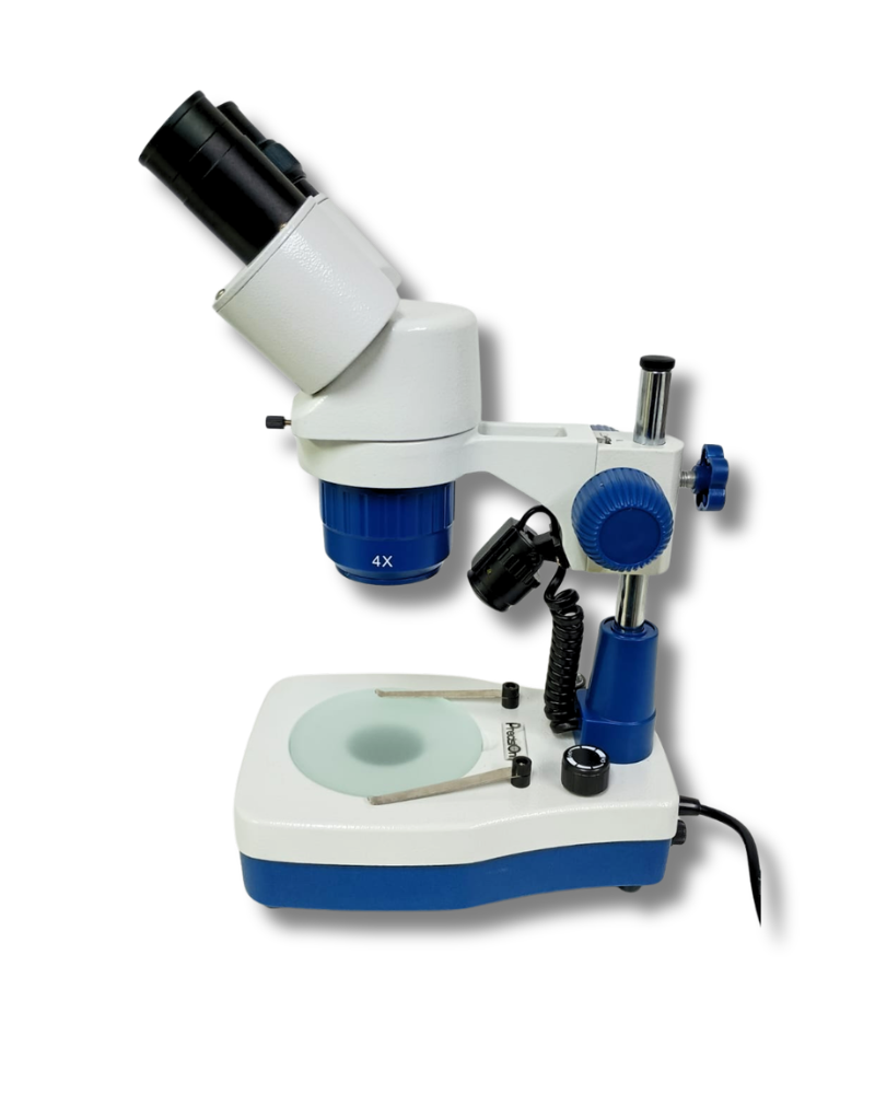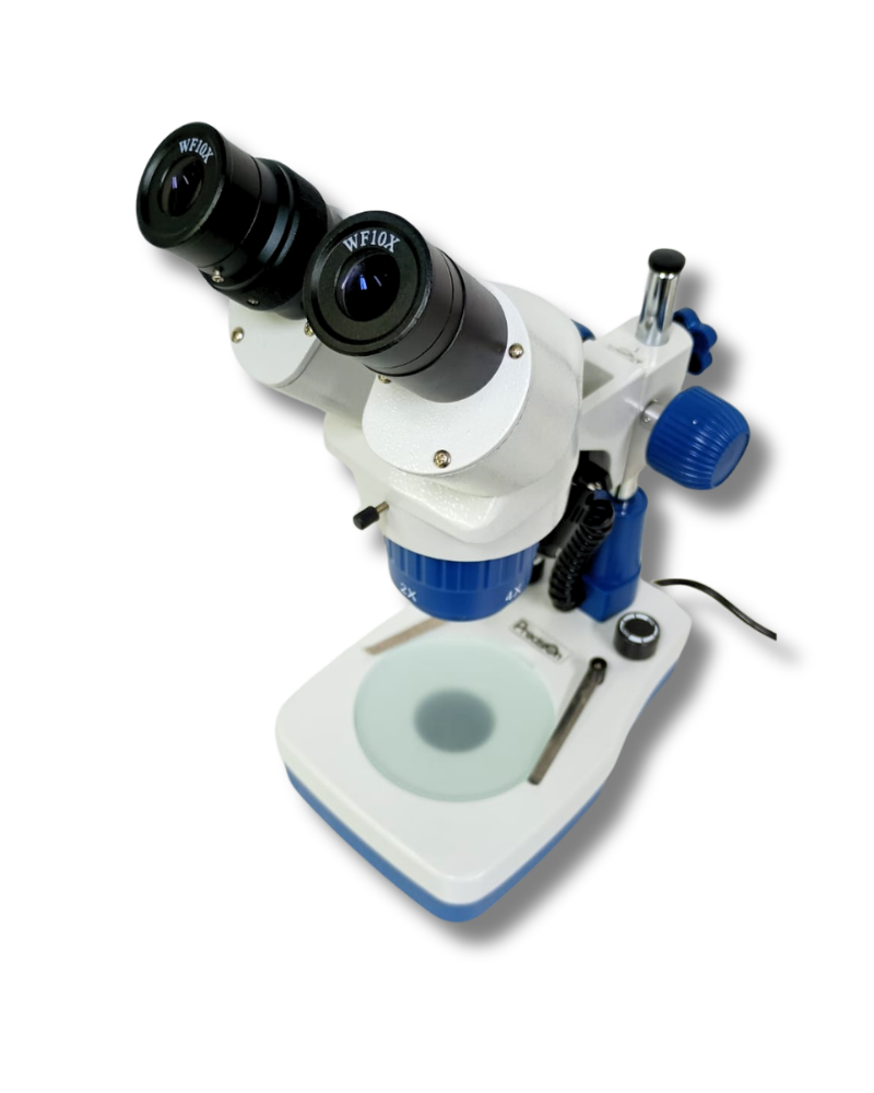 Estereomicroscópio binocular com amplo campo de visão, muito utilizado para inspeção, montagem ou manutenção de peças de precisão na indústria eletrônica, para observação e estudo de animais e plantas, usado também em pesquisas científicas, anatomia, biologia, arqueologia, seleção de sementes agrícolas, entre outros.
